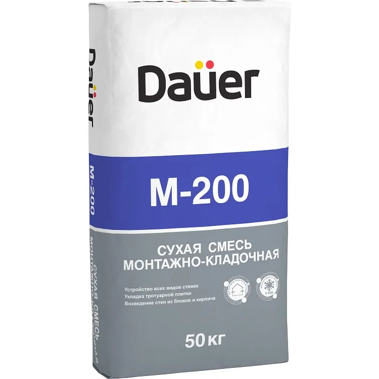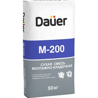 Сухая смесь монтажно-кладочная М-200 - применяется при выполнении как наружных, так и внутренних строительно-отделочных работ, предназначена для кладки кирпича, блоков и тротуарной плитки, бетонирования лестниц, ремонта полов, монтажа конструкций, ремонта и заделки швов. Толщина слоя 5-50мм.