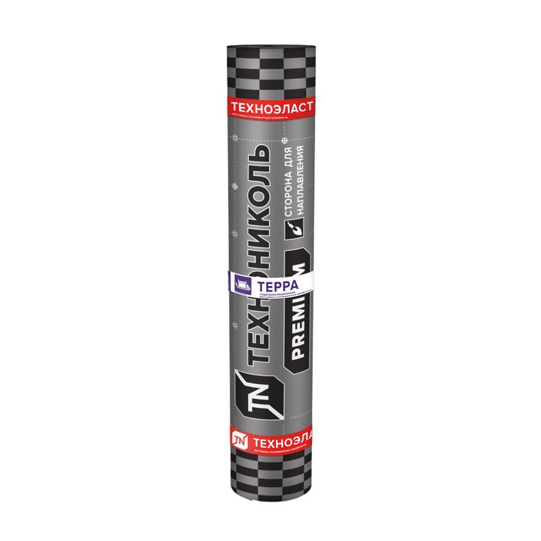 Техноэласт ТЕРРА - получают путем двустороннего нанесения на полиэфирную основу (массой 250 г/м2) битумно-полимерного вяжущего. В качестве верхнего защитного слоя используют мелкозернистую посыпку, предохраняющую материал от избыточного нагрева и воздействия УФ- излучения на время производства работ. Снизу материал защищен легкоплавкой полимерной пленкой с индикаторным рисунком ТехноНИКОЛЬ.